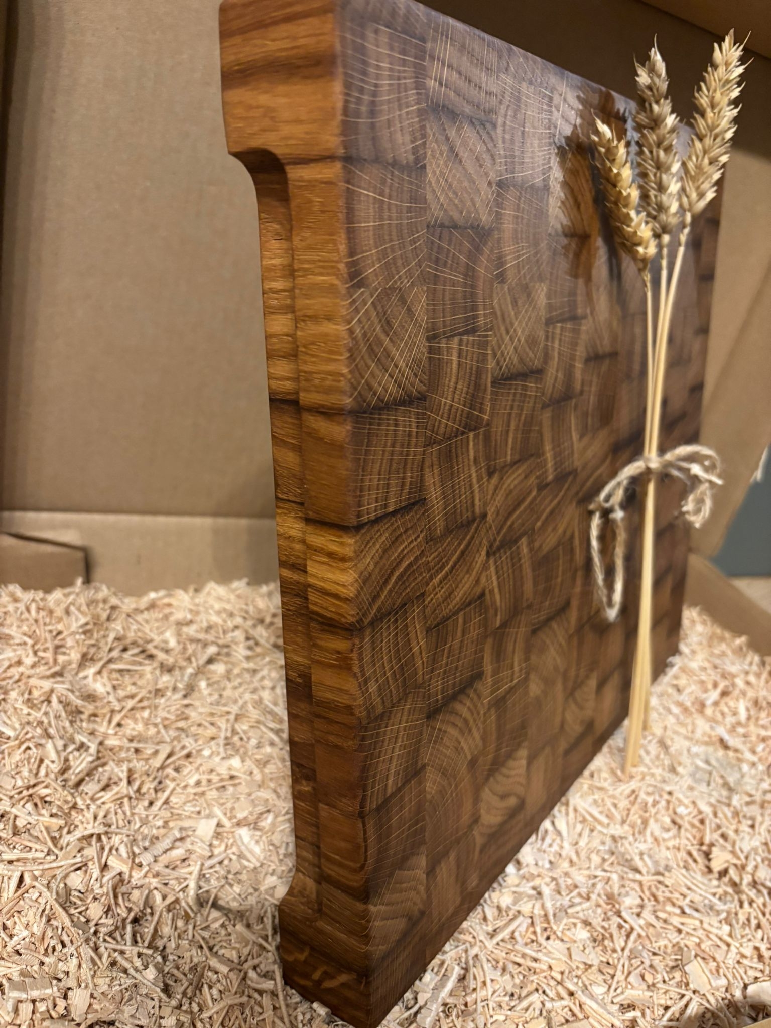 Dąb słynie z twardości, odporności na uszkodzenia i szlachetnej, ciepłej barwy, a układ sztorcowy sprawia, że ostrze noża wnika między włókna drewna, a nie je przecina — dzięki czemu deska jest wyjątkowo odporna na ślady krojenia i przyjazna dla noży.