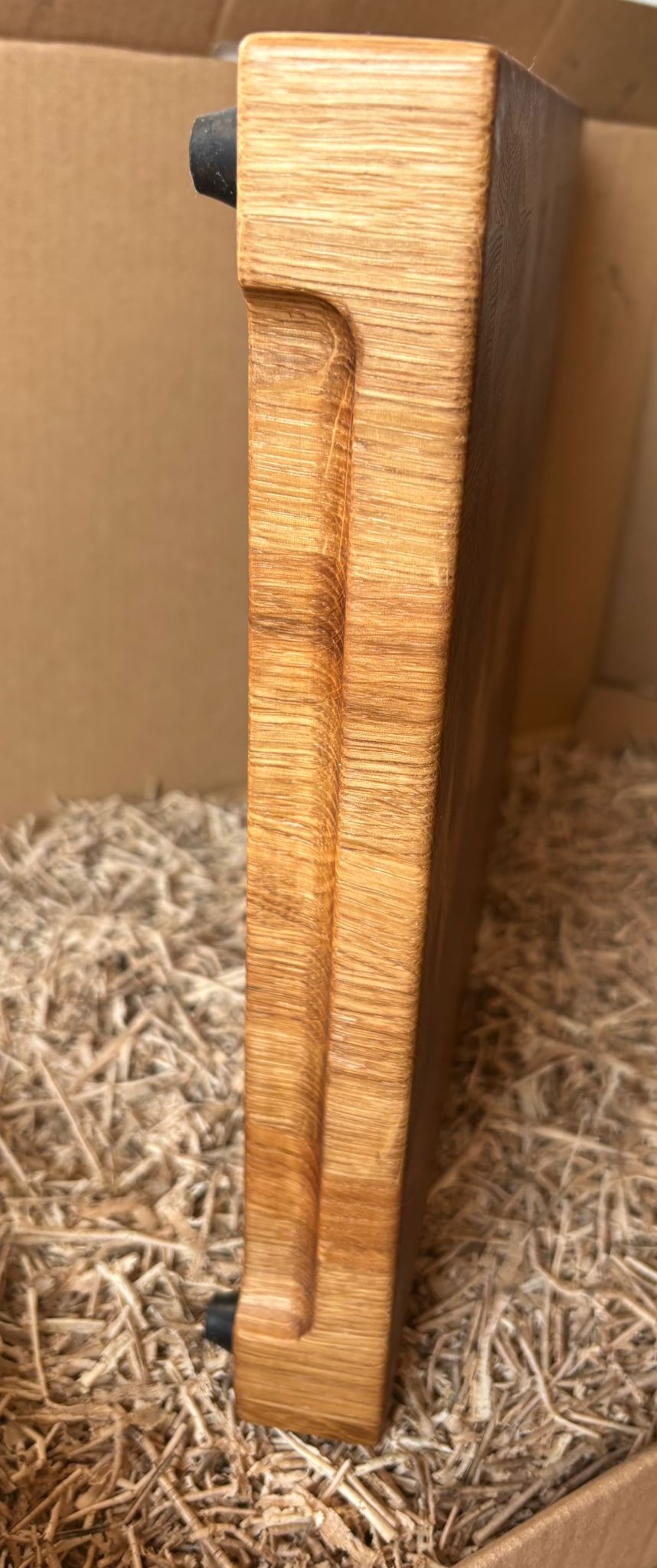 Dąb słynie z twardości, odporności na uszkodzenia i szlachetnej, ciepłej barwy, a układ sztorcowy sprawia, że ostrze noża wnika między włókna drewna, a nie je przecina — dzięki czemu deska jest wyjątkowo odporna na ślady krojenia i przyjazna dla noży.