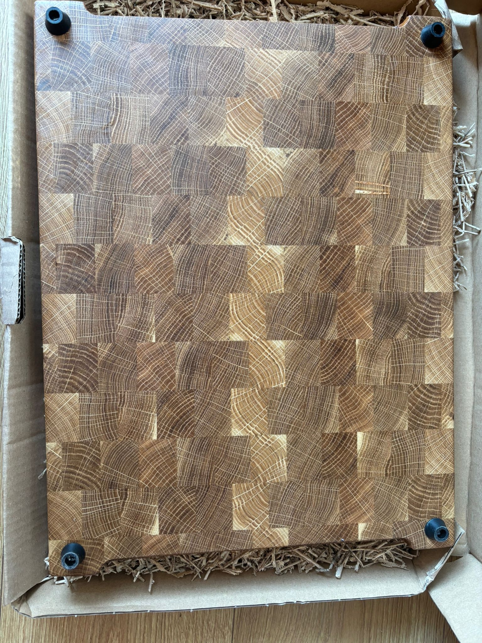 Każdy egzemplarz jest unikatowy — różnice w usłojeniu, odcieniach i układzie klocków sprawiają, że nie istnieją dwie identyczne deski.