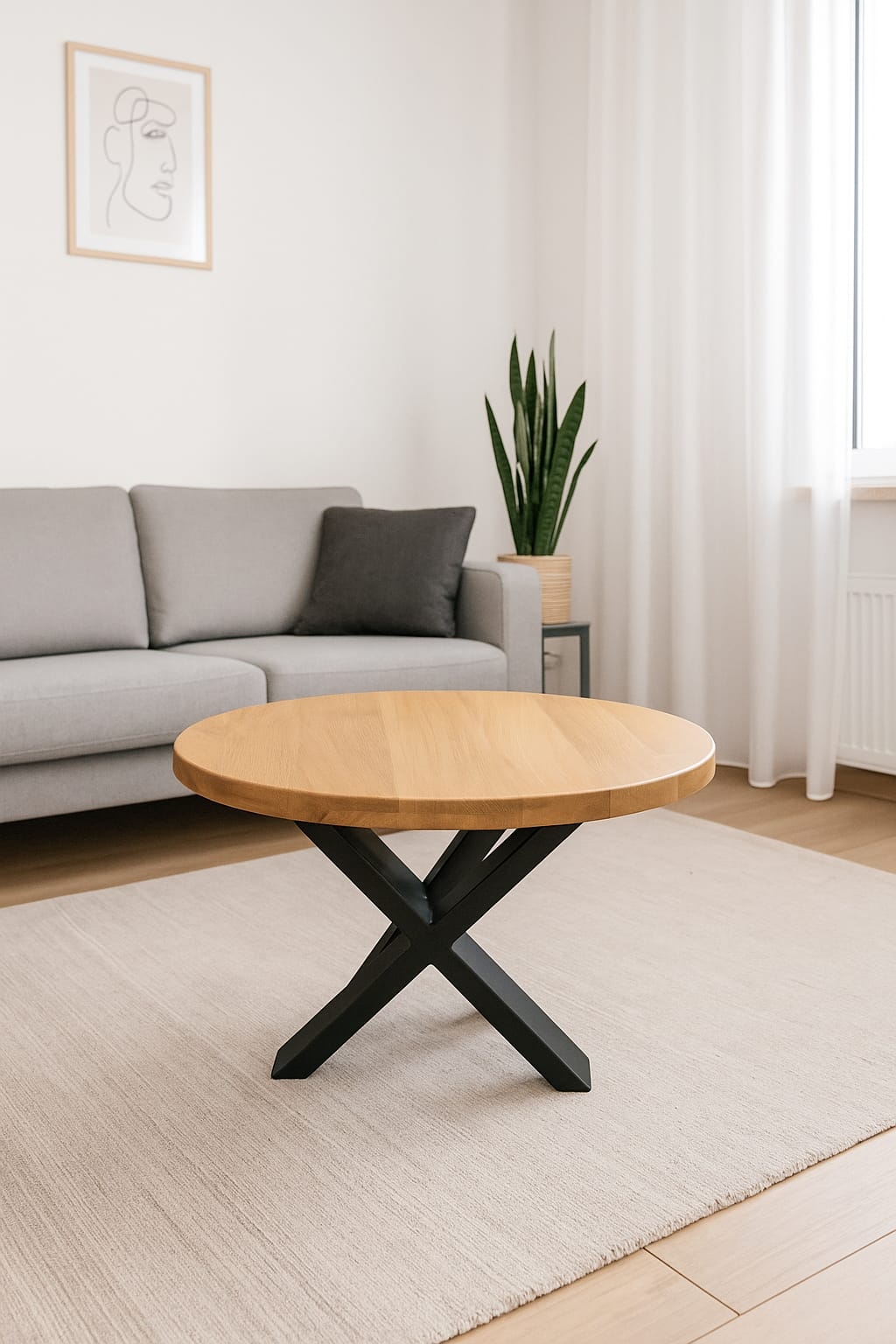 Dębowy stolik kawowy LOFT Dębowy stolik kawowy LOFT to ponadczasowy, solidny element wystroju salonu. Dąb – tak jak jesion – słynie ze swojej wyjątkowej twardości, wytrzymałości i odporności na codzienne użytkowanie, dzięki czemu blat z prawdziwej dębowej klejonki posłuży na lata. Naturalne usłojenie oraz charakterystyczne przebarwienia nadają mu niepowtarzalny wygląd, a czarne metalowe nogi tworzą mocny, nowoczesny kontrast. To połączenie prostoty i elegancji sprawia, że stolik świetnie odnajduje się nie tylko w stylu loftowym, ale również w bardziej klasycznych czy minimalistycznych wnętrzach. ### **Specyfikacja stolika kawowego LOFT** * Średnica blatu: okrągły, wykonany z dębowej klejonki * Grubość blatu: 20 mm * Wysokość: 52 cm * Materiał blatu: dąb, zabezpieczony naturalnym olejem podkreślającym jego piękno * Materiał nóg: metal malowany proszkowo na kolor czarny * Maksymalna nośność: 30 kg Każdy stolik może nieznacznie różnić się usłojeniem i barwą drewna – to naturalna cecha dębu, która sprawia, że każdy egzemplarz jest wyjątkowy. ### **Jak powstaje stolik kawowy LOFT** Każdy stolik tworzony jest ręcznie w naszym zakładzie. Przechodzi serię starannie wykonywanych etapów: * selekcja i precyzyjne przycięcie desek * wyrównanie i wieloetapowe szlifowanie * impregnacja naturalnym olejem, który podkreśla kolor i twardość dębu * dopracowanie detali i montaż metalowych nóg To dokładna rzemieślnicza praca, dzięki której stolik zachowuje zarówno trwałość, jak i estetyczny charakter. ### **Dlaczego warto wybrać dębowy stolik kawowy LOFT?** * ponadczasowy design * trwały i odporny na uszkodzenia dąb * ręczne wykonanie w Polsce * naturalny materiał o pięknym usłojeniu * stabilne, metalowe nogi * unikatowy egzemplarz