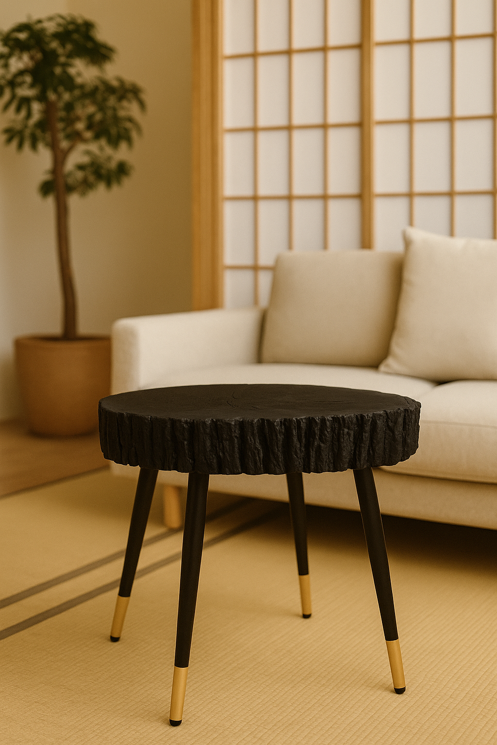 To wyjątkowo stylowy i trwały element wystroju salonu. Plaster drewna lipowego opalony metodą Shou Sugi Ban wyróżnia się głęboką, intensywną barwą, wyrazistym usłojeniem i niepowtarzalną strukturą. Dzięki temu stolik nie tylko pełni funkcję praktyczną, ale staje się też efektowną dekoracją wnętrza, wnosząc ciepło i charakter do salonu, gabinetu lub przestrzeni komercyjnej.