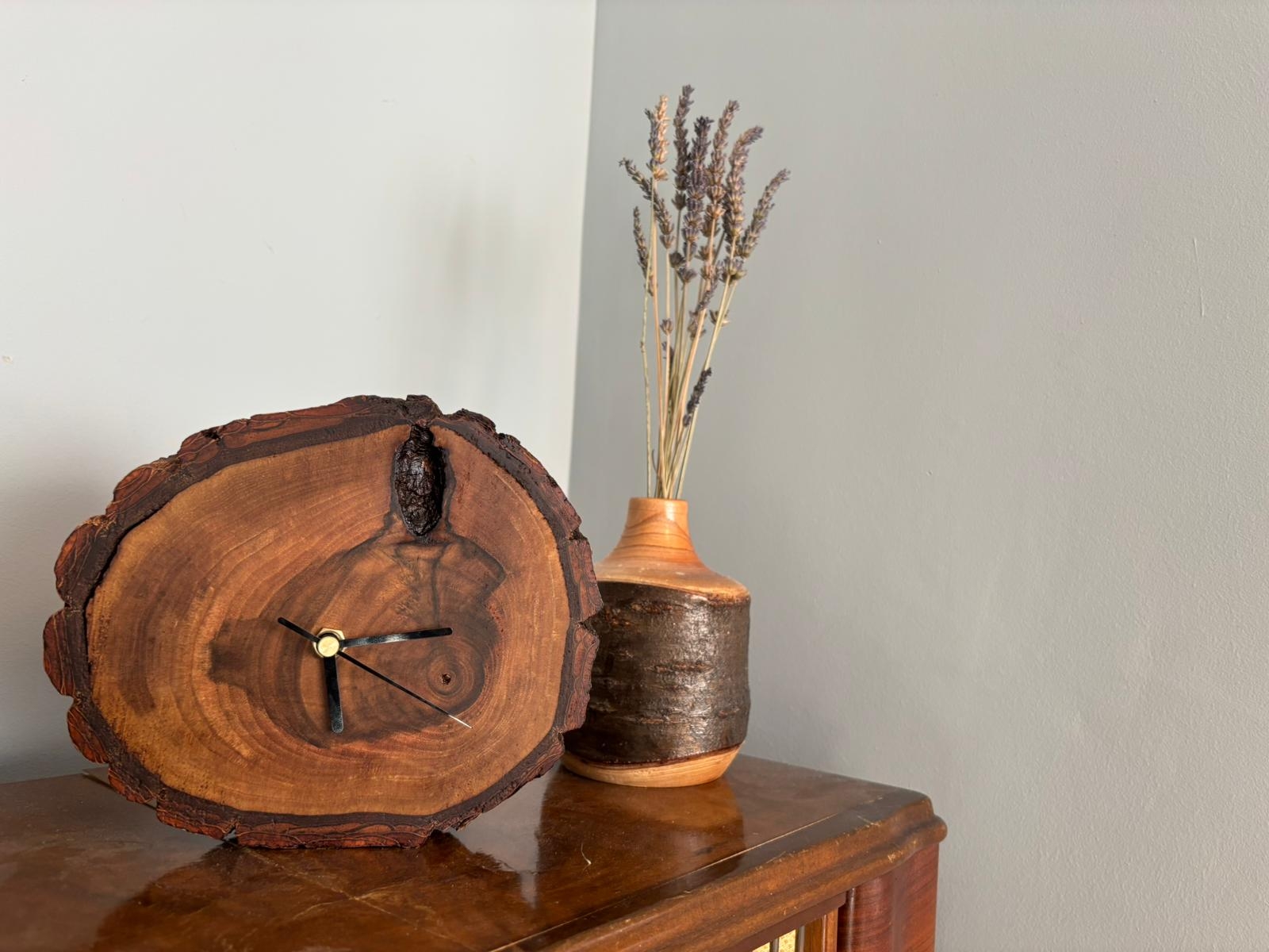 Dlaczego warto wybrać zegar z plastra drewna orzecha