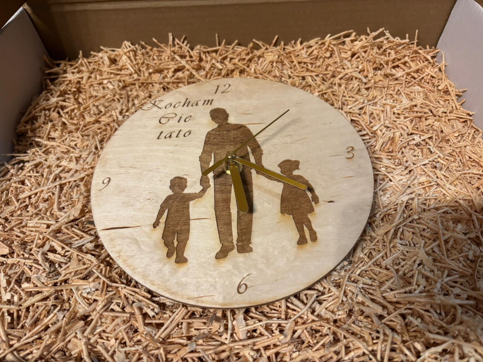 Grawerowany Zegar Drewniany – wyjątkowy prezent dla Babci i Dziadka Szukasz prezentu, który naprawdę wzruszy i będzie towarzyszył Twoim bliskim każdego dnia? Nasz drewniany zegar z personalizowanym grawerem to idealny wybór na Dzień Babci, Dzień Dziadka, urodziny, rocznicę czy święta. To nie tylko praktyczny dodatek do domu, ale także piękna pamiątka pełna ciepła i rodzinnych emocji. Naturalne drewno i elegancki design Zegar wykonany jest z wysokiej jakości drewna, dzięki czemu prezentuje się stylowo i pasuje do każdego wnętrza – zarówno klasycznego, jak i nowoczesnego. Precyzyjny grawer nadaje mu indywidualnego charakteru, tworząc prezent, który cieszy oczy i serce. Personalizacja, która ma znaczenie Każdy zegar przygotowujemy specjalnie dla Was: dodaj imiona wnuków wybierz dedykację (Babciu, Dziadku, Babciu i Dziadku, Prababciu itd.) dopasuj zegar do okazji Dzięki temu każdy egzemplarz jest niepowtarzalny i pełen osobistego przesłania. Idealny prezent na każdą okazję Ten zegar to piękny sposób, aby podziękować za wspólnie spędzony czas. Świetnie sprawdzi się: na Dzień Babci i Dziadka na urodziny na rocznicę na święta jako wyjątkowa pamiątka od wnuków To prezent, który zostaje w domu na lata i codziennie przypomina o najbliższych. Instrukcja personalizacji Podczas składania zamówienia prosimy podać: Dedykację, np.: Babciu Dziadku Babciu i Dziadku Prababciu Pradziadku Pradziadkowie (Inne dedykacje – opcja dodatkowo płatna) Imiona wnuka/wnuków – np. Marysia i Julian (prosimy nie stosować pisania wielkimi literami) ➡ Maksymalnie 3 imiona mieszczą się w jednej linii. Jeśli imion jest więcej – ułożymy je estetycznie w dwóch liniach, dostosowując czcionkę do ramki. Uwaga: brak przesłanych danych oznacza wykonanie zegara bez personalizacji. Nie odpowiadamy za literówki lub błędy w przesłanym tekście – treść grawerujemy dokładnie tak, jak w zamówieniu. Co znajduje się w zestawie? drewniany zegar z grawerem cichy mechanizm wskazówki do samodzielnego montażu krótka instrukcja ułatwiająca złożenie elementów Zestaw jest przygotowany tak, aby bezpiecznie dotarł do odbiorcy. Dodaj eleganckie opakowanie W kategorii „Zapakuj swój prezent” możesz dokupić: stojak do zegara ekologiczne pudełko prezentowe z okienkiem (30 × 30 × 5 cm) To idealne uzupełnienie podarunku dla Babci i Dziadka.